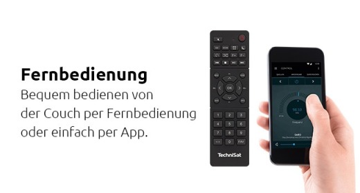 Steuern Sie den Empfänger bequem mit der im Lieferumfang enthaltenen Fernbedienung oder nutzen Sie eine OKTIV- oder UNDOK-App für die Steuerung Ihrer Lieblingsmusik.