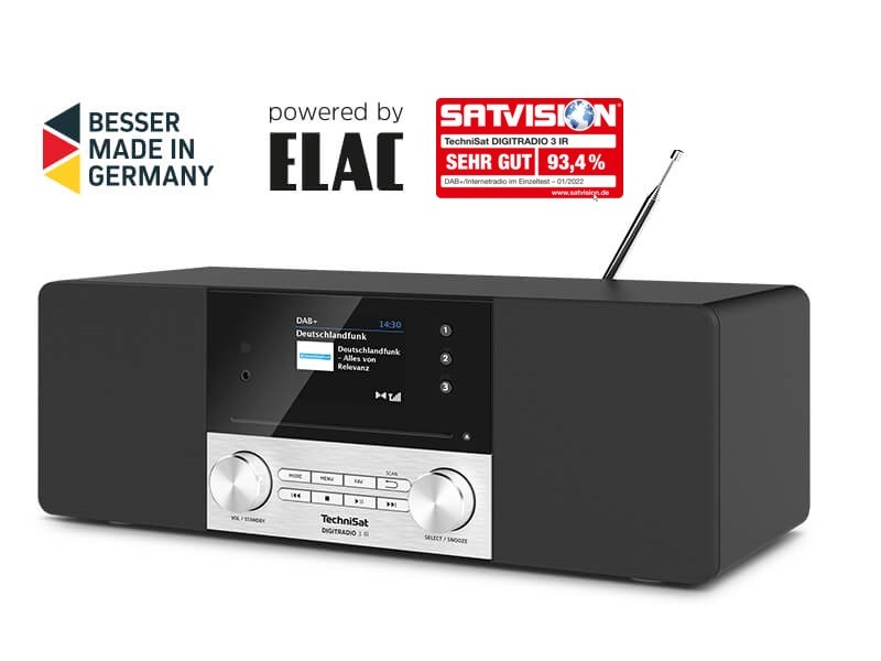 Das DIGITRADIO 3 IR ist ein DAB+ Digitalradio „Made in Germany“. Im eleganten Design mit hochwertiger Aluminiumfront punktet das DIGITRADIO 3 IR zudem mit zahlreichen Komfortfunktionen.