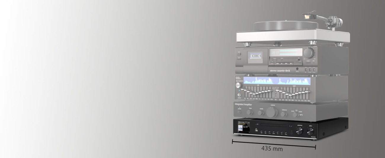 Das DIGITRADIO 143 CD passt als Hi-Fi-Baustein mit einer Breite von 435 mm perfekt zu vielen Hi-Fi-Systemen. Es ergänzt Ihre Stereoanlage mit einer Vielfalt an Radio, Musik und Streamingmöglichkeiten.