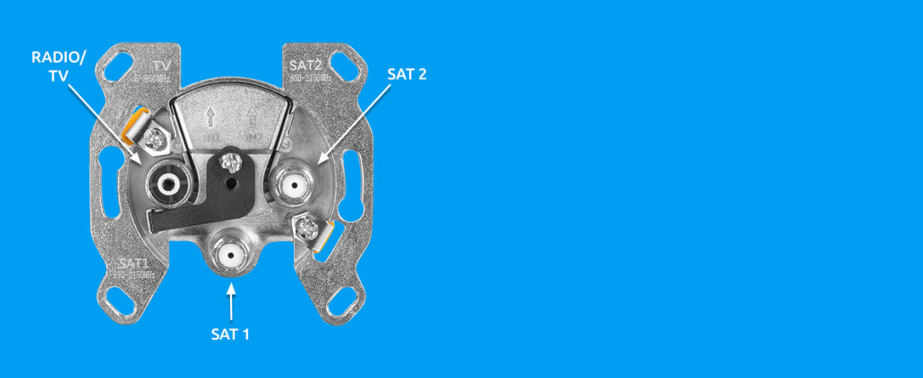 Die Dose bietet zwei Sat-Anschlüsse, die vollkommen getrennt voneinander arbeiten. Die SVT 600-V2 Dose wird über zwei Koax-Leitungen mit einem Multiswitch verbunden. Über einen dritten Ausgang wird eine eventuell eingeschleifte Terrestrik mit Radio/TV (Frequenzbereich: 5 - 860 MHz) ausgekoppelt.